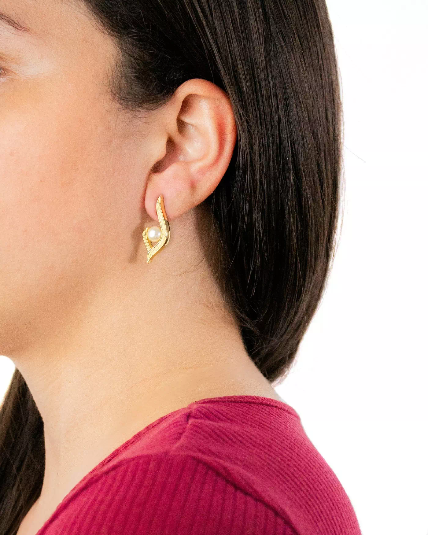 Seu formato inspirado em uma folha aberta confere um toque de natureza e feminilidade à peça, enquanto os detalhes tracejados ao longo do brinco proporcionam um acabamento refinado e único.