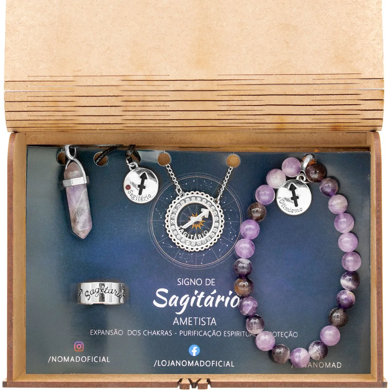 Conjunto de Signo de Sagitário – Pedra Ametista