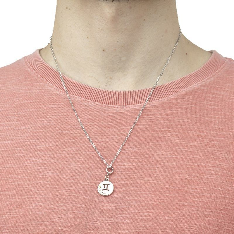 Esse lindíssimo conjuntinho unissex do signo de GÊMEOS é ideal para incrementar seus looks! A corrente é de Aço Inoxidável 316 L e o pingente é confeccionado e banhado a Níquel, garantindo assim uma excelente durabilidade; o acabamento é minucioso com direito a um belo ponto de luz e pode ser usado em pulseiras de berloque! Se presenteie ou presenteie alguém querido com essa linda e delicada peça!Gêmeos é o terceiro signo astrológico do zodíaco, seu símbolo é algarismo romano II, que representa dois irmãos gêmeos. É um signo do elemento Ar, regido por Mercúrio. Geminianos são persuasivos, alegres e bastante sociáveis.