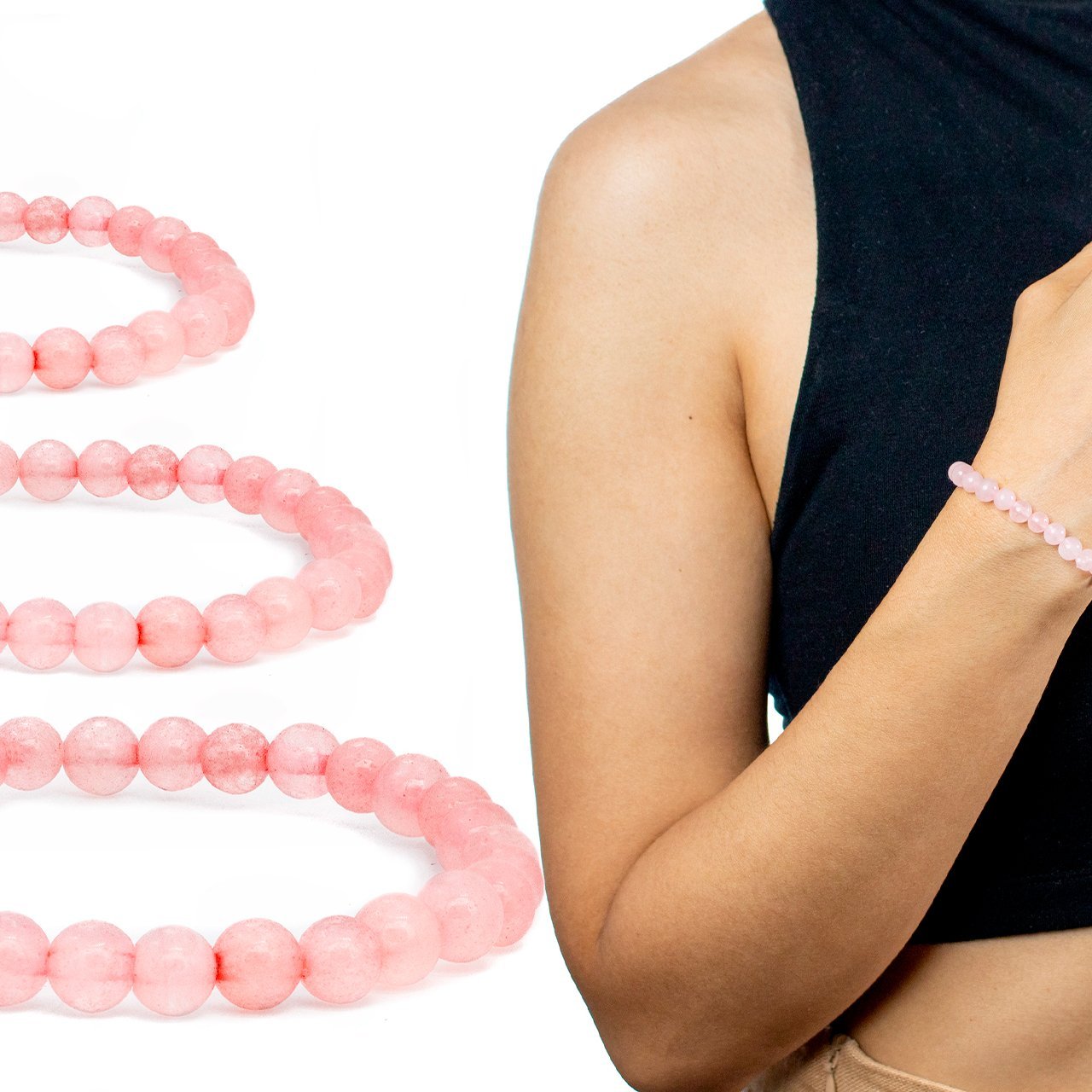 Pulseira de Pedra Quartzo Rosa 6mm