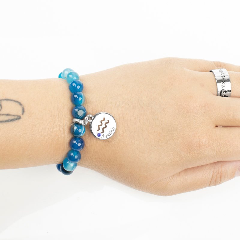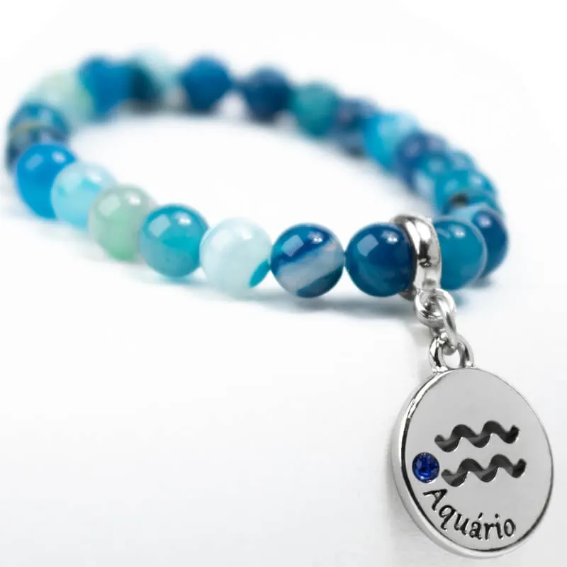 Pulseira de Signo de Aquário – Pedra Ágata Azul
