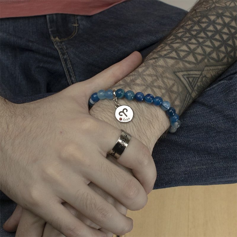 Acreditamos que uma das coisas mais importantes da vida é ser sincero consigo mesmo, por isso convidamos você a conhecer a NOMAD, uma marca pioneira em inovação, com filiais em vários Estados do Brasil.Quem não ama acessórios de signo? Com essa linda pulseira temática de ÁRIES confeccionada com Ágata Azul, você levará pra casa qualidade, sofisticação, autenticidade e estilo juntos! As contas que compõem a pulseira são de pedras naturais, e além disso ela vem com um lindo pingente do signo. A peça é ideal para quem curte montar looks criativos ou dar presentes cheios de personalidade!Priorizamos seu conforto, segurança e satisfação, afinal, sabemos que essas coisas são muito importantes, não é mesmo? Por isso, o produto conta com GARANTIA DE 3 MESES CONTRA DEFEITOS DE FABRICAÇÃO + NOTA FISCAL.Produto disponível à PRONTA-ENTREGA com postagem feita em até 24 HORAS ÚTEIS após a compra.*O QUE VOCÊ RECEBERÁ?- 1 Pulseira de contas confeccionadas com pedras naturais de Ágata Azul, acompanhada de pingente de níquel com o símbolo do signo de Áries;- Fio e + 1 pedra para caso você queira ajustar o tamanho de seus pulseiras;- Nota Fiscal;- Certificado de Garantia de 3 meses contra defeitos de fabricação.*INFORMAÇÕES ADICIONAIS- Áries é o primeiro signo astrológico do zodiaco, seu símbolo é o carneiro. É um signo do elemento Fogo, regido por Marte. Arianos são pessoas extremamente leais, pois defendem seus amigos com unhas e dentes. Amam novas experiências, pois têm o espírito livre.- Uma das pedras que representa o signo é a Ágata Azul, um cristal que já foi usado há mais de 3.000 anos pelos egípcios na fabricação de alguns objetos, principalmente selos, devido a crença de que a pedra é uma forte fonte de proteção.*PERGUNTAS FREQUENTESP: Vocês têm pulseiras temáticas de outros signos?R: Sim! Temos de todos os signos, inclusive com diferentes opções de pedras, confira nosso catálogo.P: Qual o tamanho da pulseira?R: Todas as nossas pulseiras de contas são ajustáveis.P: Embalam para presente?R: Sim! Embalamos para presente sem custos adicionais.P: Quando os produtos são postados?R: Temos todos os produtos disponíveis à pronta entrega, portanto, dependendo da hora da compra, enviamos no mesmo dia durante o horário de funcionamento dos correios, caso contrário, no dia útil seguinte (não são contados sábados, domingos e feriados).P: Posso entrar em contato com a loja se tiver mais dúvidas?R: Sim! Sinta-se à vontade para entrar em contato e através de nossa central de atendimento. Atendemos todos os dias úteis em horário comercial.Ficamos gratos com a sua visita, boas compras!